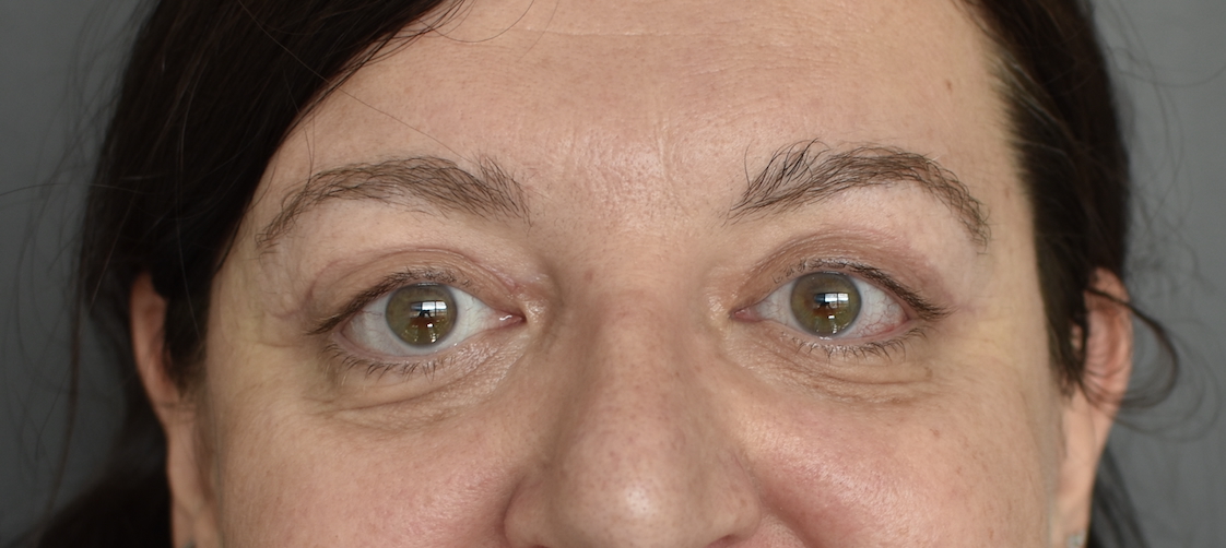 Patiente de 57 ans, opérée des paupières supérieures sous anesthésie locale. Résultat à un an.